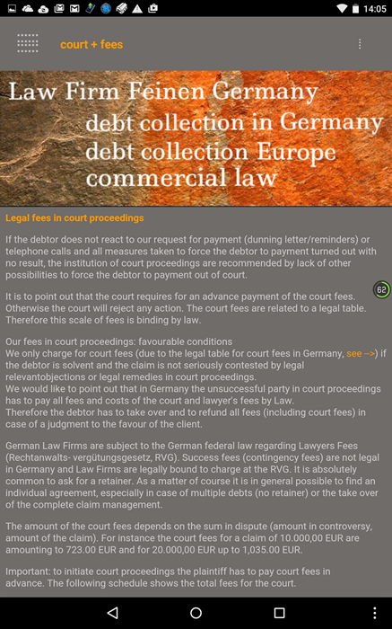 Glossary of Legal Terminology English – German (472 words) Dustin DeGrande German Translator (law enforcement’s taking of a suspect into formal custody)- n. die Verhaftung bankruptcy (legal declaration of one’s inability to pay debts) ... View Document