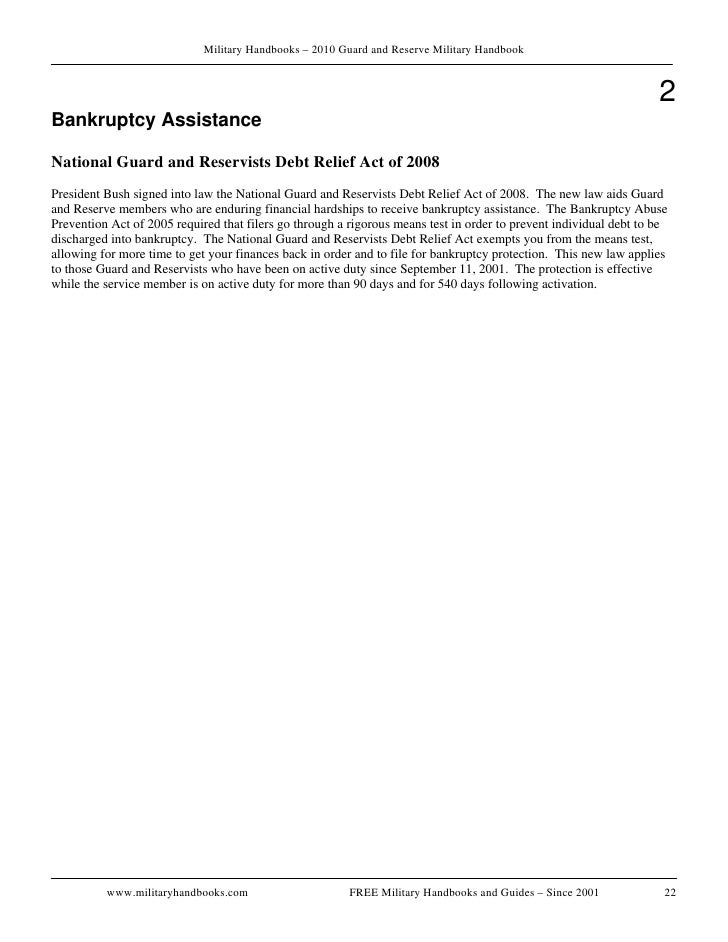 Bankruptcy for Active Duty & Retired Military In these tough financial times, members of the U.S. Military (both active duty and (paycheck) with DFAS, and stop collection calls and letters. A Chapter 7 case can also discharge debt to a ... Document Viewer